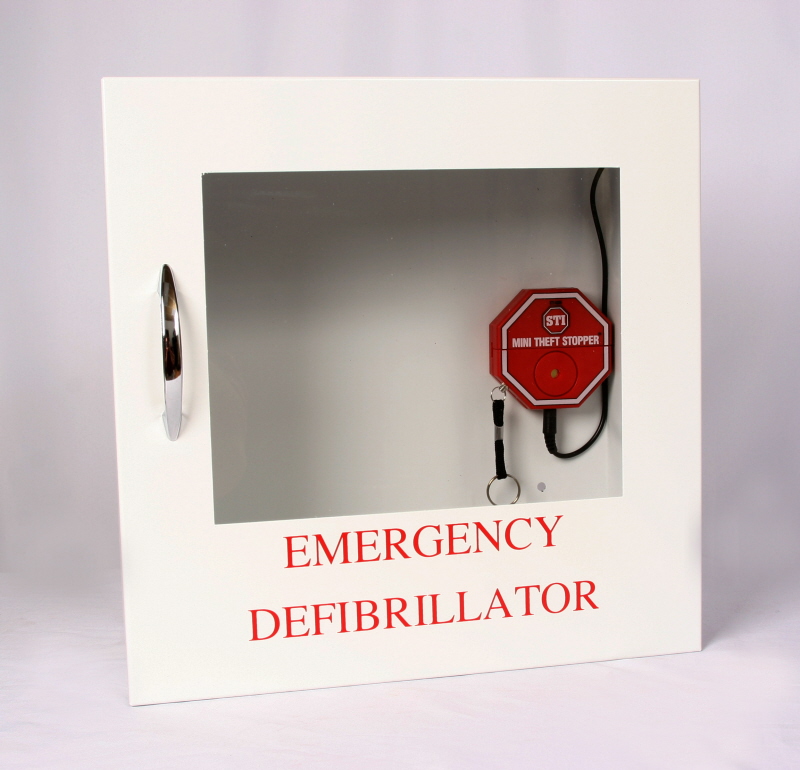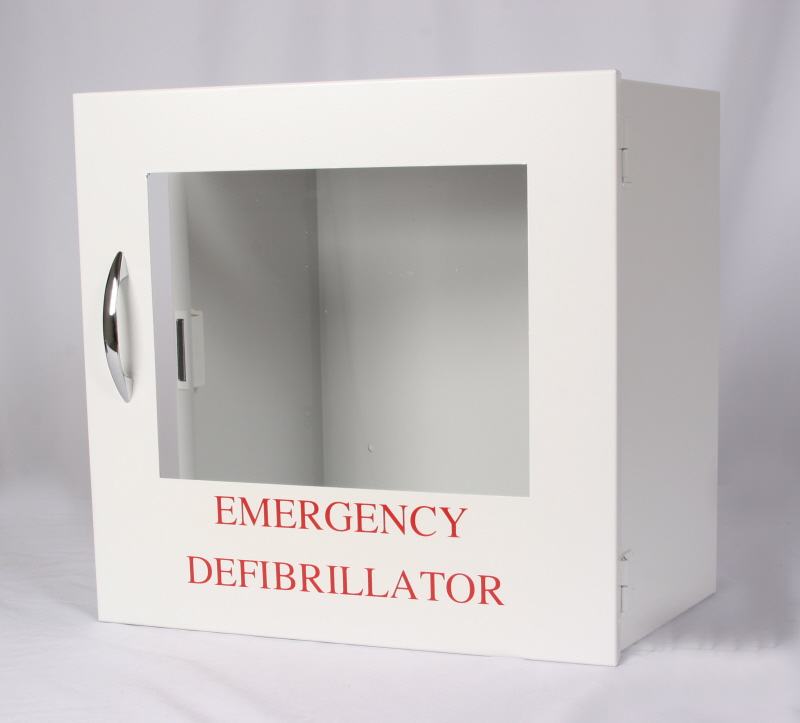 | -Wall mount cabinet available with or without an alarm. -Cabinet will hold any AED -Cabinet measures: 14" x 14" x 7" |